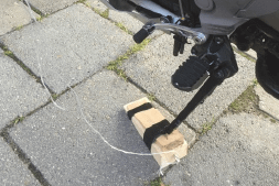 Next day I was off to the local equivalent of B&Q to purchase some wood, tape, screws and string and set-to in their car park, to make a peg-leg for my bike. You may laugh – I did – but it worked. I could stop, lower the peg-leg on the string and manoeuvre it under the broken side stand. I was concerned though about using my Heath Robinson handwork on the Tallinn to Helsinki Ferry, so phoned my local, Aberdeen Honda dealer. I wanted to know the part number and availability of the side stand for the standard Africa Twin, the difference in lengths and whether the fixings were the same for both. I received a full reply the following day – the difference in length is 2cm and the fitting is the same.