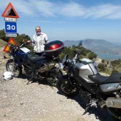 We just learned that one rider a month does not survive the twisty, mountainous road from Ronda to San Pedro. Just as well we didn’t know that a few days earlier when Liz and I rode that exact road….in the wet! However that day, we’d had our ‘sensible heads’ on and, however much the temptation was to twist the throttle and look up at the amazing views, we went gingerly and carefully on the slippery roads. We also rode a bit and then stopped properly, at viewing points, to take in the full, sweeping vistas over the coast